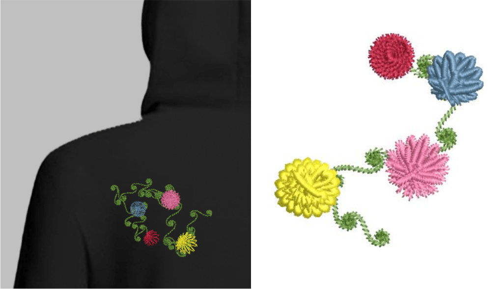 Created a Python script that takes in user size and color parameters and generates a JEF file with a pattern of flowers. The JEF file encodes a stitching pattern to decorate a garment using a Computerized Embroidery Machine.