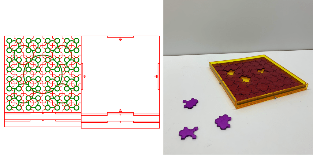 Created a MATLAB script that takes in user inputs (dimensions, design parameters, size of stock) and outputs an SVG file encoding the instructions to laser cut a jigsaw puzzle.